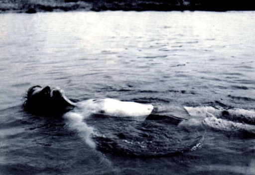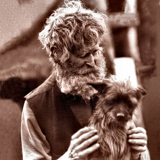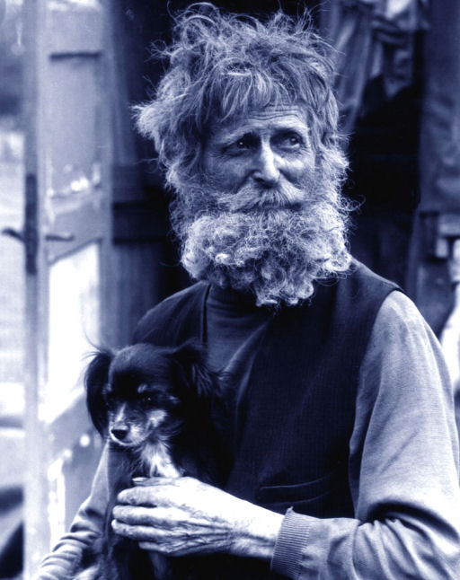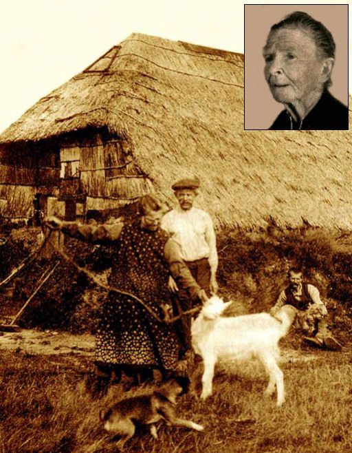foto, zittend op een kruiwagen, Grardje Kivits. Daarnaast de heer en