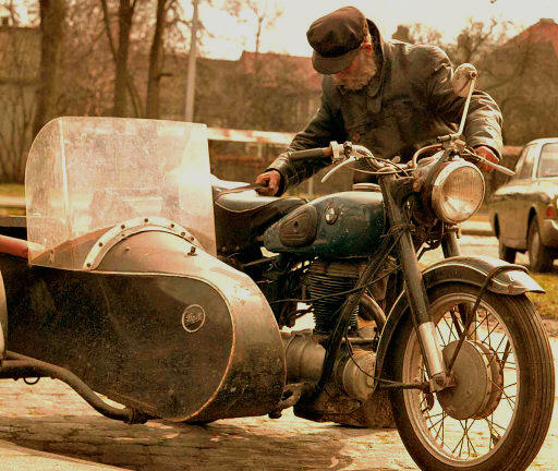 ophalen van goederen koppelde hij het zijspan aan de BMW |